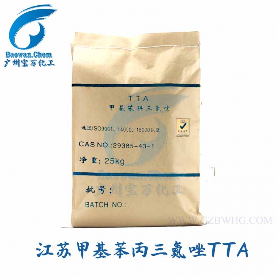 甲基苯并三氮唑,簡稱TTA 。TTA;5-甲基-1H-苯并三唑;5-甲基苯并三氮唑;5-甲基苯并三唑;間甲苯基亞疊氮化氫;間亞疊氮基甲苯;甲基苯駢三氮唑;5-甲基苯三唑;4(或5)-甲基1H-苯并三唑;甲苯三唑;甲基苯并三唑;甲基三唑;甲基-1H-苯并三唑;4-甲基1H-苯并三唑;5-甲基苯駢三氮唑;甲基苯駢三氮唑;甲苯基三氮唑