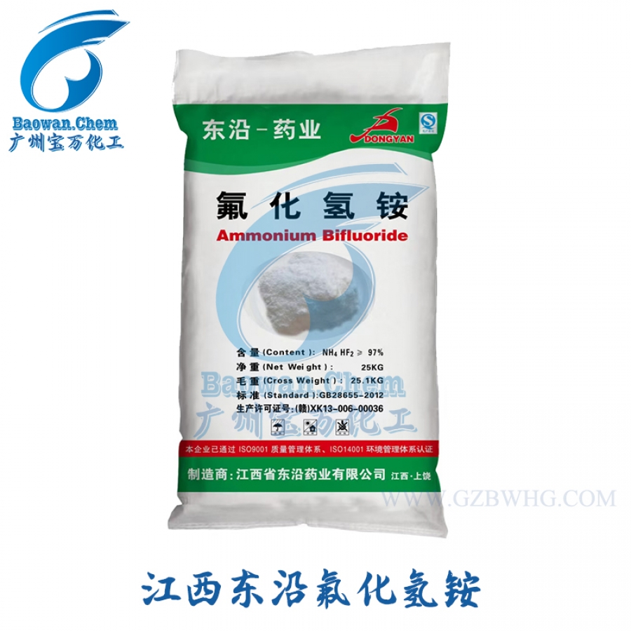 氟化氫銨是一種具有腐蝕性的化學物質,分子式為NH4HF2,其水溶液顯弱酸性,可以溶解玻璃,微溶于醇,極易溶于冷水,而且非常容易潮解。