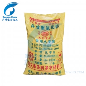 聚合氯化鋁的包裝以及注意事項⒈外用塑料編織袋,內有塑料薄膜套裝,每袋凈重25kg,還可根據用戶要求改裝,另有液體聚合氯化鋁銷售。