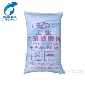 三聚磷酸鈉水溶液呈弱堿性(1%水溶液的PH值約為9.7),它在PH為4.3~14范圍水)中,形成懸濁液(類似乳化液)的作用,即分散作用。三聚磷酸鈉也能使液態(tài)、固態(tài)微粒更好的溶于液體(如水)介質(zhì)中,使溶液外觀完全透明,好像真溶液一樣,這就是增溶作用。由于三聚磷酸鈉具有以上獨特的性能,使之成為洗衣粉中的一種重要的理想原料。 [3]