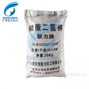 農(nóng)業(yè)上用作高效磷鉀復(fù)合肥;磷酸二氫鉀產(chǎn)品廣泛適用于各類型經(jīng)濟(jì)作物、糧食、瓜果、蔬菜等幾乎全部類型的作物,各省均由當(dāng)?shù)氐霓r(nóng)科院所、土肥站等專家機(jī)構(gòu)針對(duì)磷酸二氫鉀適用于各類典型作物進(jìn)行了很多的相關(guān)應(yīng)用實(shí)驗(yàn),通過各地對(duì)各類型作物的實(shí)際施用效果證明磷酸二氫鉀具有顯著增產(chǎn)增收、改量?jī)?yōu)化品質(zhì)、抗倒伏、抗病蟲害、防治早衰等許多優(yōu)良作用,并且具有克服作物生長(zhǎng)后期根系老化吸收能力下降而導(dǎo)致的營(yíng)養(yǎng)不足的作用。磷酸二氫鉀屬新型高濃度磷鉀二元素復(fù)合肥料,其中含五氧化二磷52%左右,含氧化二鉀34%左右??緹熜枇?、鉀量大,特別是需鉀量大。磷酸二氫鉀是用于烤煙的一種較為理想的新型肥料。為了探索磷酸二氫鉀在烤煙上的使用價(jià)值和施用方法,以提高煙葉品質(zhì)。磷酸二氫鉀用在棉花上能夠控制棉花徒長(zhǎng),增加植株花苞數(shù)量。磷酸二氫鉀廣泛運(yùn)用于滴管噴灌系統(tǒng)中。