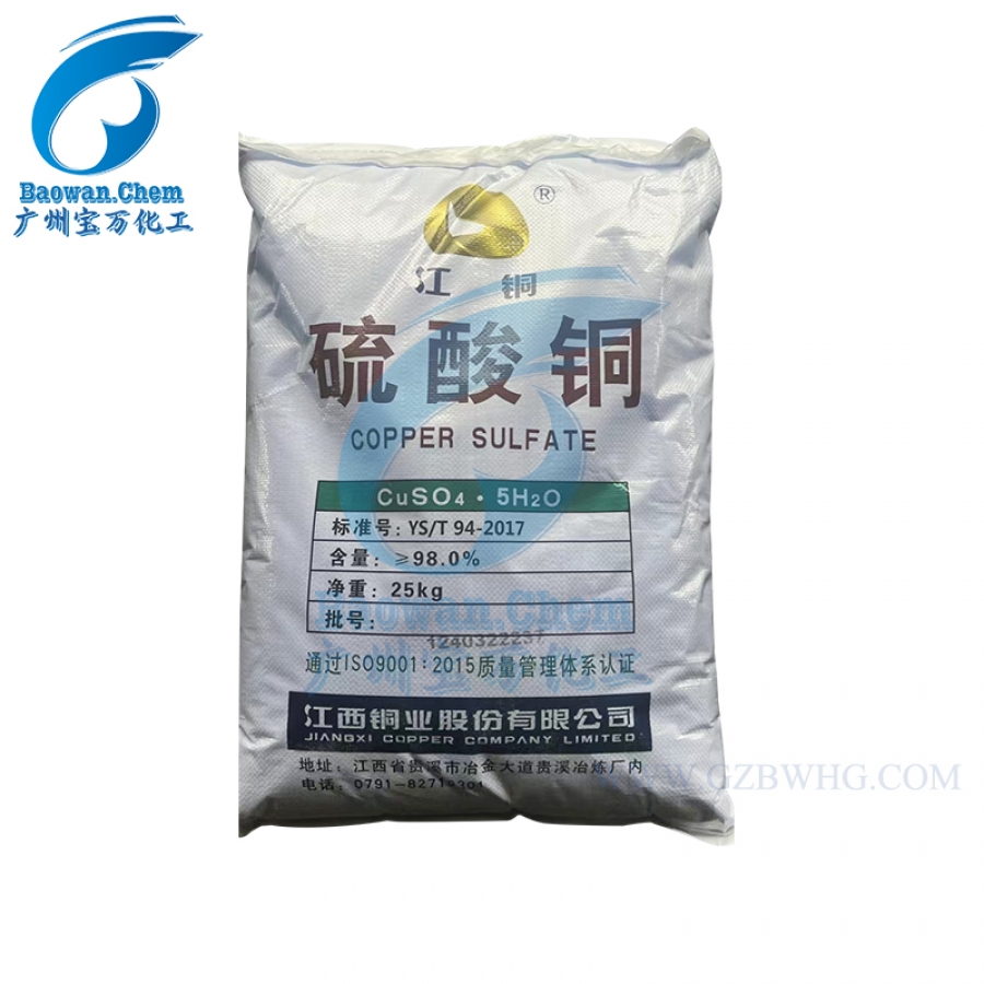 硫酸銅是藍(lán)色三斜晶系結(jié)晶,外觀亮籃色,粒度均勻,流動(dòng)性好,溶于水,25℃時(shí)水中溶解度為23.05g,溶于稀乙醇,不溶于無水乙醇、乙醚、液氨。硫酸銅加熱至110℃失去四分子結(jié)晶水,250℃失去全部結(jié)晶水。650℃分解成氧化銅和三氧化硫。[1]