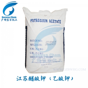 還可用作防冰物質(zhì),取代氯化鈣和氯化鎂之類的氯化物。它對(duì)土壤的侵蝕作用和腐蝕性更小,尤其適用于機(jī)場(chǎng)跑道除冰,但價(jià)格較昂貴。 食品添加劑(防腐及控制酸度)。滅火器的組分。用在乙醇沉淀DNA中。 用于保存、固定生物組織,與甲醛連用。乙酸鉀可由氫氧化鉀或碳酸鉀與乙酸發(fā)生酸堿中和反應(yīng)制備:2CH3COOH + K2CO3 → 2CH3COOK + CO2 + H2O。